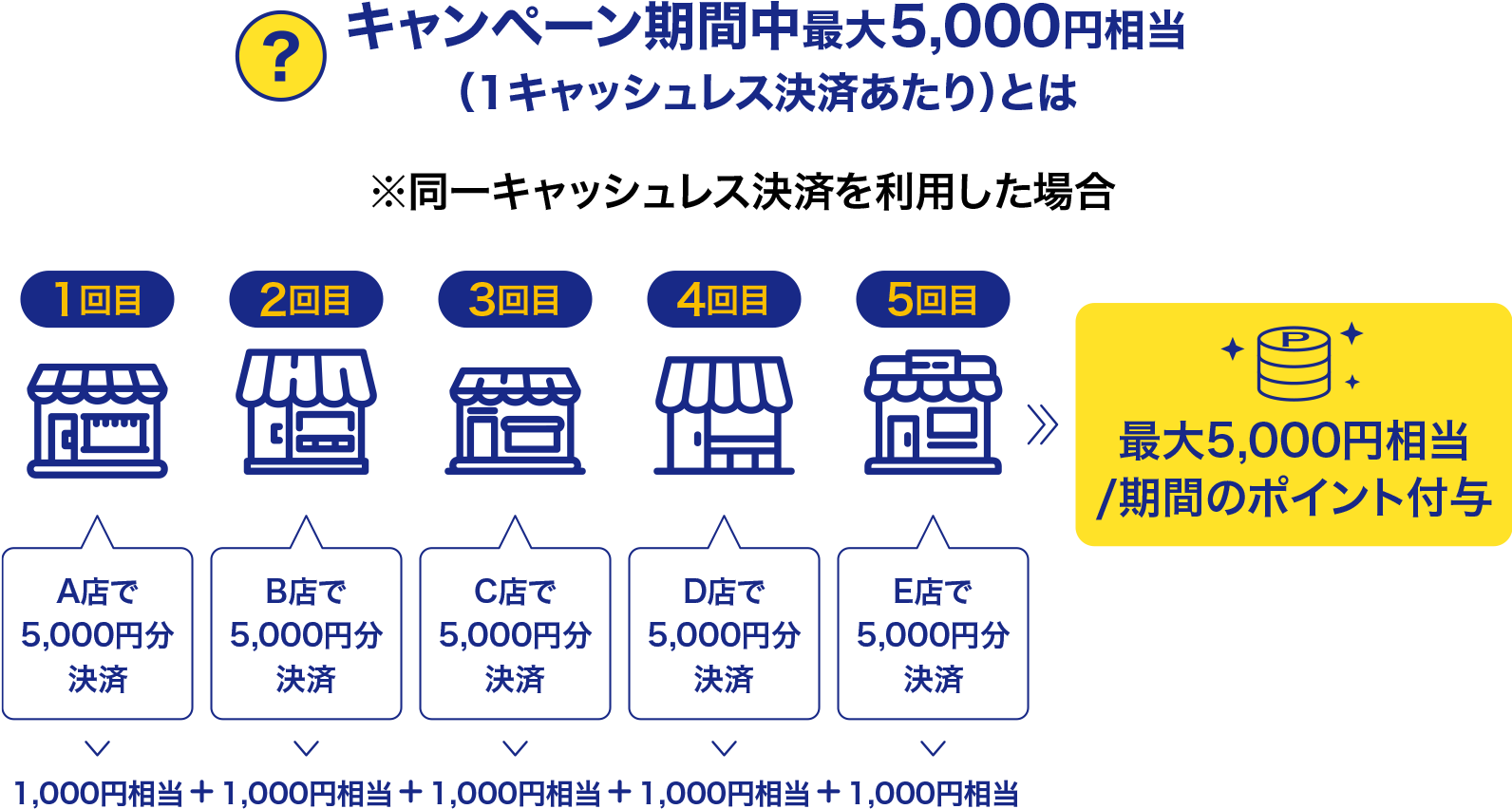 5,000円相当分×5キャッシュレス決済=25,000円相当分